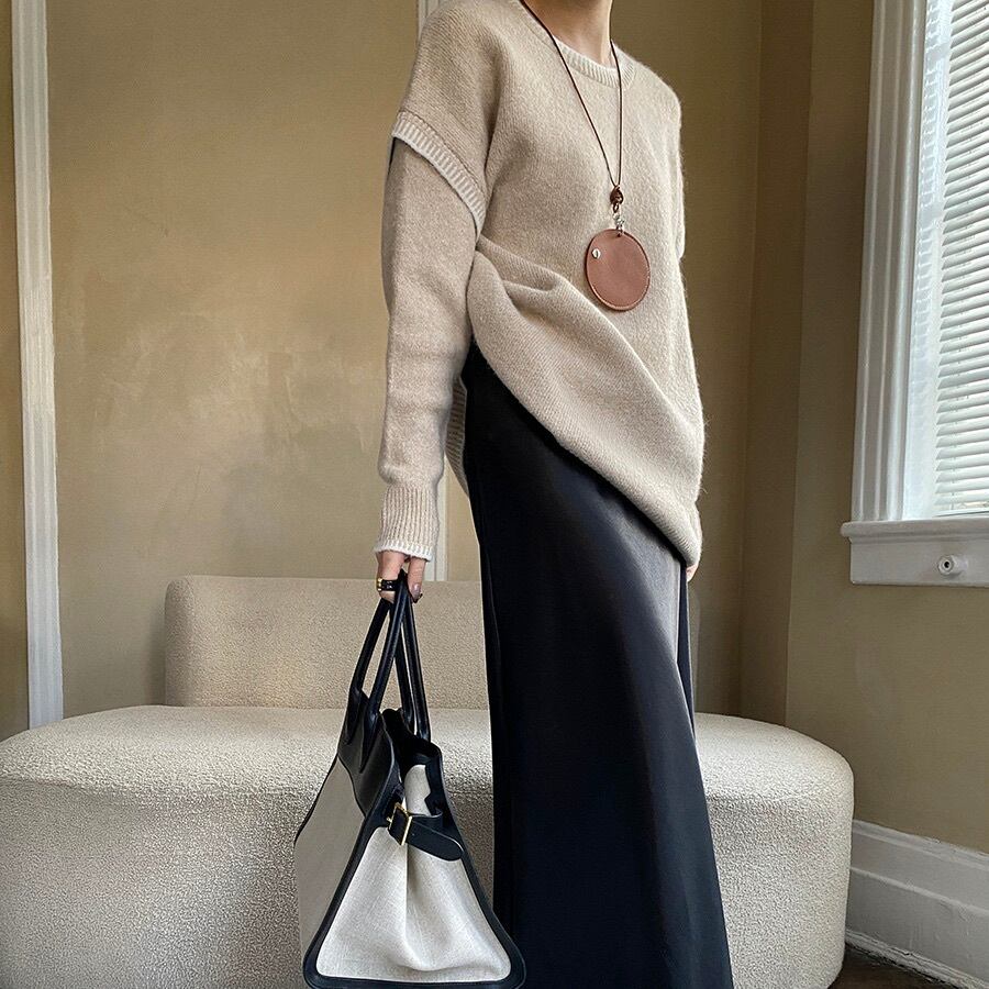 トップス ニット セーター レディース 長袖 ラウンドネック オーバーサイズ フェミニン かわいい 大人可愛い きれいめ シンプル 上品 おしゃれ かっこいい こなれ感 ガーリー クール エレガント モダン 抜け感 キュート 都会的 クラシカル ベーシック ナチュラル 無地 授業参観 20代 30代 40代 50代 デート お出かけ イベント 休日 韓国 オルチャン 楽ちん 体型カバー 普段使い 着回し レイヤード 清楚 トレンド 流行 インスタ映え 白 ホワイト グレー ベージュ ベーシックカラー