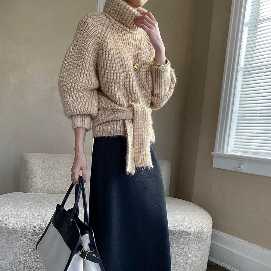 トップス ニット セーター レディース 長袖 ボリューム袖 ハイネック タートルネック オーバーサイズ フェミニン ハイウエスト リブニット ベルト付き きれいめ シンプル 上品 おしゃれ レトロ こなれ感 エレガント 抜け感 キュート 都会的 クラシカル ナチュラル 無地 デート お出かけ イベント 休日 重ね着 韓国 オルチャン 楽ちん 暖かい 防寒 体型カバー 普段使い 着回し レイヤード トレンド 流行 インスタ映え ゆったり ゆる フリーサイズ 白 ホワイト 茶色 ブラウン グレー ベージュ