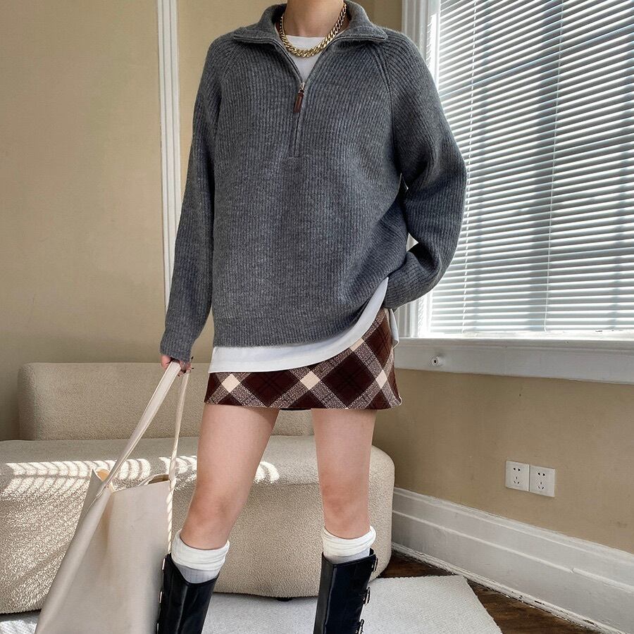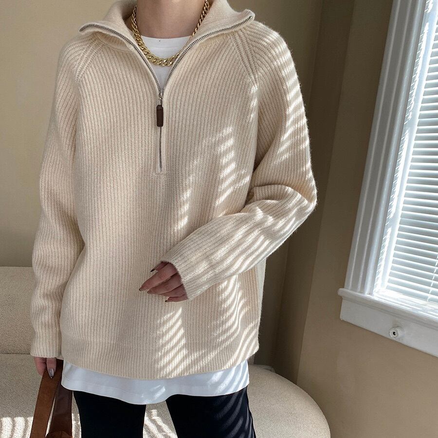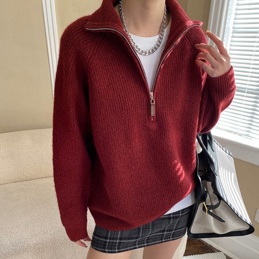 トップス レディース ニット セーター プルオーバー 長袖 オーバーサイズ ボーイフレンド ファスナー リブニット ヴィンテージ ジッパー ハーフジップ シンプル カジュアル 上品 おしゃれ かっこいい レトロ こなれ感 メンズライク マニッシュ 抜け感 ベーシック アメリカン アクティブ ナチュラル お出かけ アウトドア キャンプ 公園 休日 重ね着 韓国 オルチャン 体型カバー 普段使い 着回し レイヤード 定番 ゆったり ゆる フリーサイズ クリーム グレー レッド ベーシックカラー 大人カラー