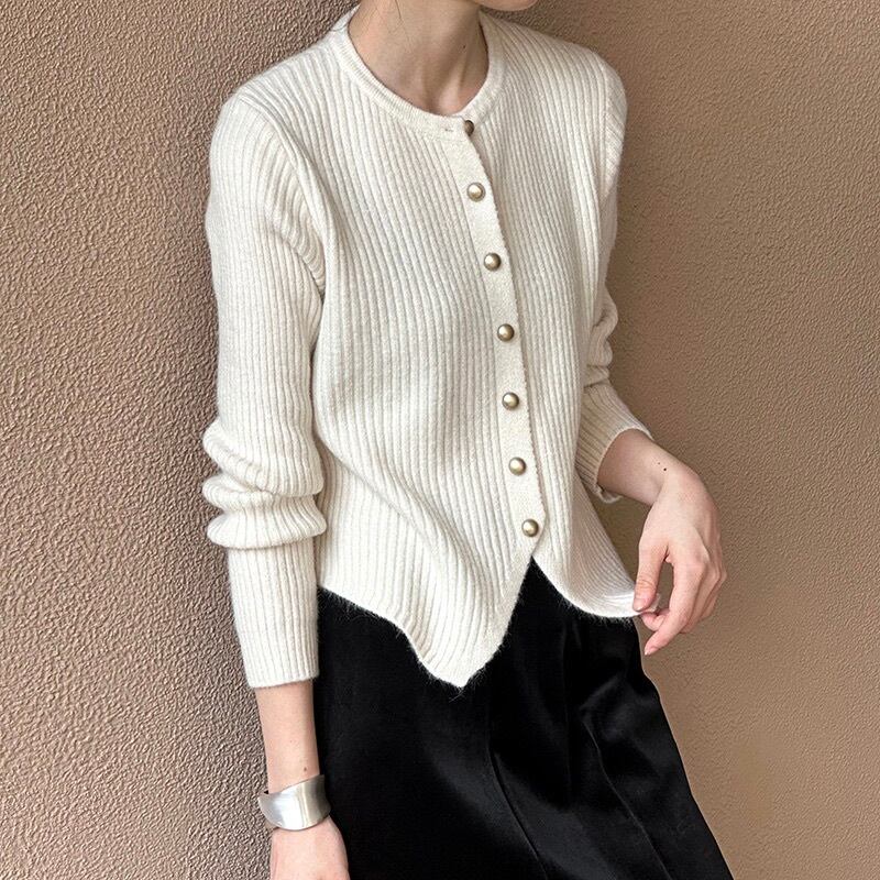 トップス カーディガン レディース 羽織 前開き 長袖 ラウンドネック フェミニン コンサバ ボタン ヴィンテージ ニット リブニット 大人可愛い きれいめ シンプル 上品 おしゃれ レトロ ガーリー エレガント キュート クラシカル ベーシック ナチュラル 会議 MTG ミーティング プレゼン オフィス 通勤 お出かけ 休日 発表会 カフェ 婚活 重ね着 韓国 オルチャン 普段使い 着回し レイヤード トレンド 流行 定番 フリーサイズ 白 ホワイト クリーム グレー ライトグレー ダークグレー レッド