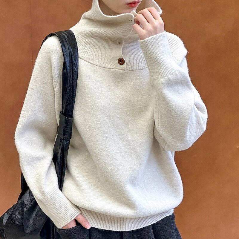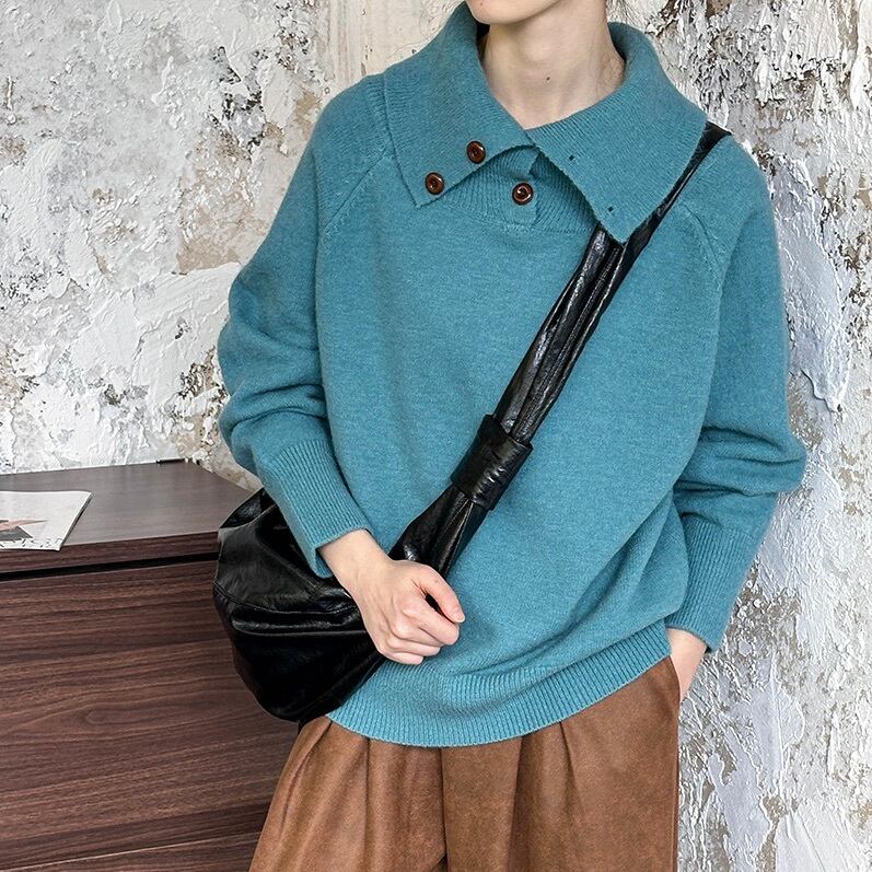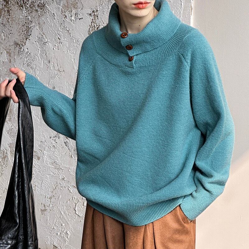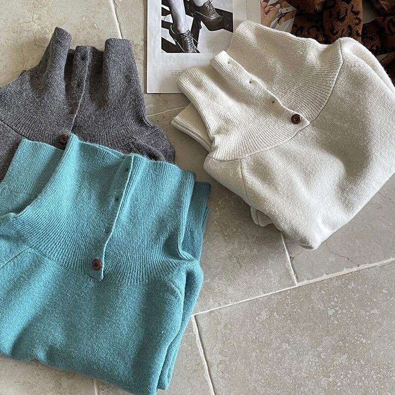 トップス ニット セーター レディース 長袖 ハイネック タートルネック オーバーサイズ フェミニン ストリート ボタン ヴィンテージ かわいい 大人可愛い きれいめ シンプル カジュアル 上品 おしゃれ かっこいい レトロ こなれ感 メンズライク マニッシュ エレガント モダン クラシカル ベーシック プレッピー カントリー アクティブ ナチュラル 無地 お出かけ 休日 重ね着 韓国 オルチャン 体型カバー 普段使い 着回し 定番 ゆったり ゆる フリーサイズ 白 ホワイト グレー 水色 ブルー