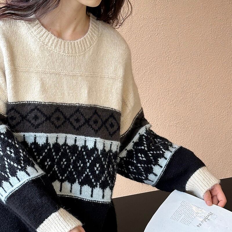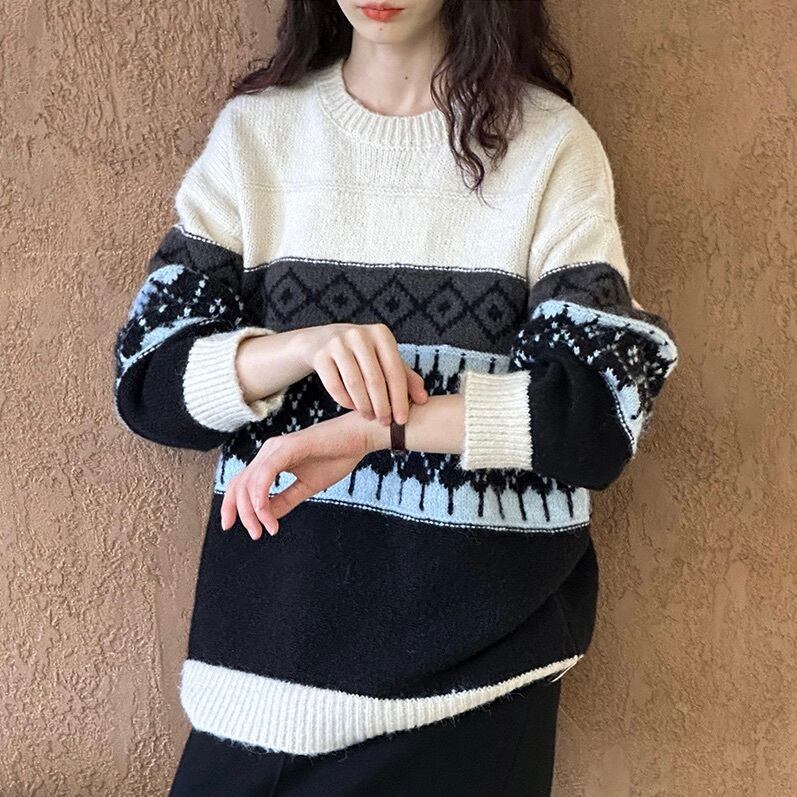 トップス ニット セーター レディース 長袖 ラウンドネック オーバーサイズ ヴィンテージ アメカジ かわいい 大人可愛い カジュアル 上品 おしゃれ かっこいい レトロ こなれ感 ラフ メンズライク マニッシュ ボーイッシュ スポーティー ガーリー 抜け感 キュート ベーシック アメリカン カントリー アクティブ ナチュラル ノルディック デート お出かけ アウトドア キャンプ イベント 旅行 女子会 休日 重ね着 韓国 オルチャン 普段使い 着回し レイヤード トレンド 流行 定番 白 ホワイト