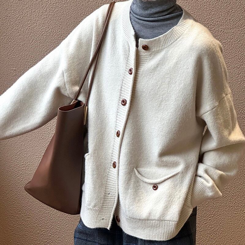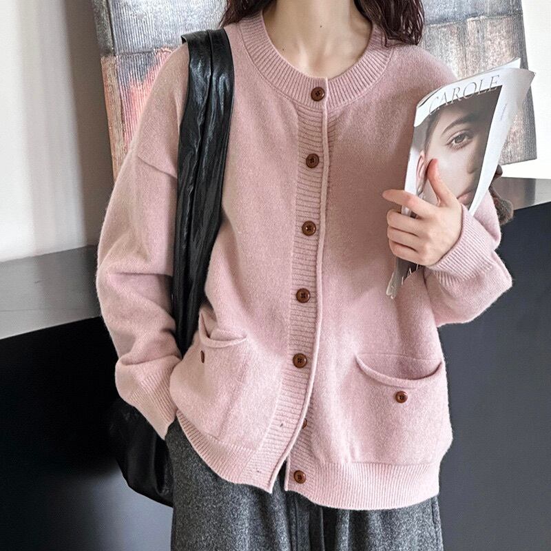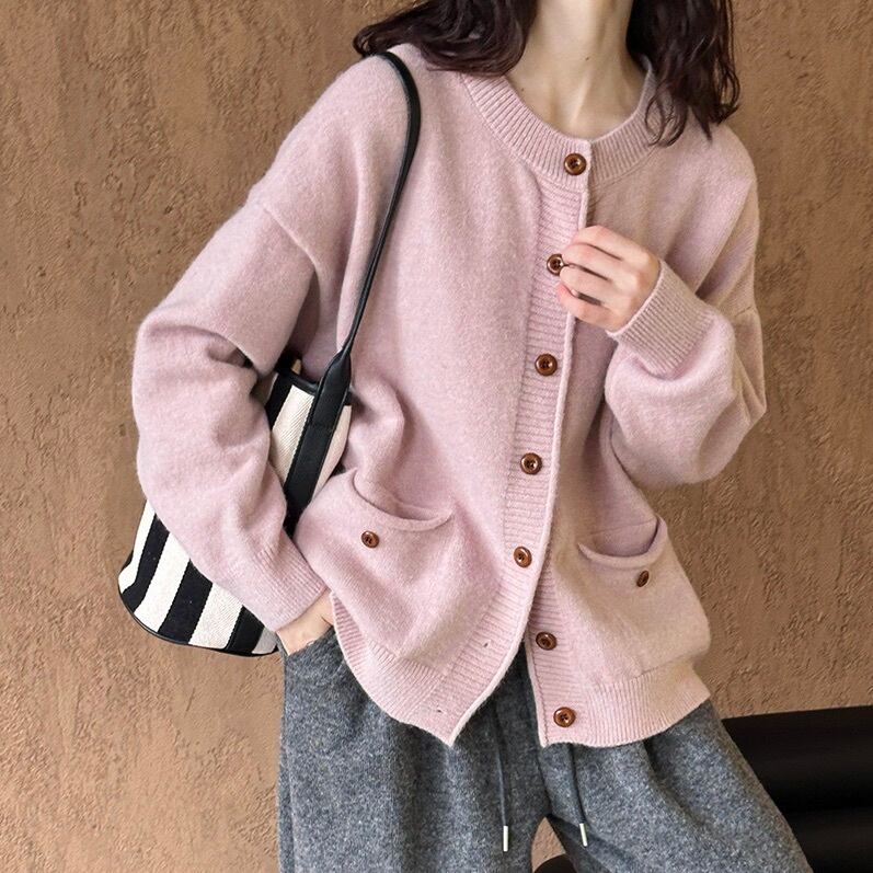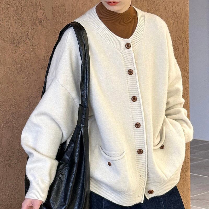 トップス ニット セーター カーディガン レディース 前開き 長袖 ラウンドネック オーバーサイズ フェミニン ストリート ポケット ボタン ヴィンテージ かわいい 大人可愛い シンプル カジュアル おしゃれ レトロ こなれ感 ラフ ガーリー 抜け感 キュート ベーシック カントリー ロマンティック ナチュラル 無地 デート お出かけ 旅行 女子会 休日 重ね着 韓国 オルチャン 体型カバー 普段使い 着回し トレンド 流行 インスタ映え 定番 ゆったり ゆる フリーサイズ 白 ホワイト グレー ピンク
