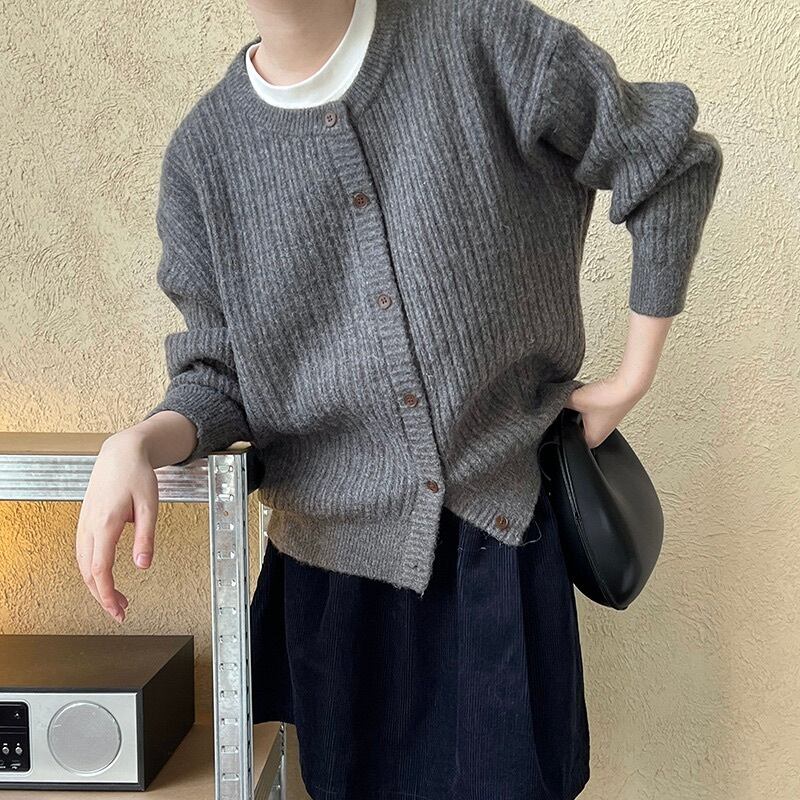 ニット セーター カーディガン レディース 長袖 ラウンドネック フェミニン 前開き リブニット ボタン かわいい 大人可愛い きれいめ シンプル カジュアル おしゃれ レトロ こなれ感 ガーリー 抜け感 ヴィンテージ ラブリー キュート ベーシック カントリー ナチュラル 無地 学生 デート お出かけ イベント 旅行 休日 ショッピング カフェ 重ね着 韓国 オルチャン 楽ちん 普段使い 着回し レイヤード 清楚 定番 ゆったり ゆる フリーサイズ クリーム グレー ライトグレー ダークグレー レッド