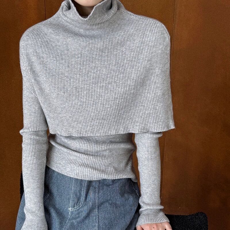 2点セット トップス ニット セーター レディース ポンチョ 長袖 ラウンドネック ハイネック タイト スリム 細身 フェミニン リブニット ヴィンテージ かわいい 大人可愛い きれいめ シンプル 上品 おしゃれ かっこいい レトロ こなれ感 エレガント モダン 抜け感 クラシカル ナチュラル 無地 お出かけ イベント 旅行 休日 重ね着 韓国 オルチャン 楽ちん 暖かい 防寒 普段使い 着回し レイヤード トレンド 流行 インスタ映え 定番 フリーサイズ 白 ホワイト 黒 ブラック グレー ベージュ