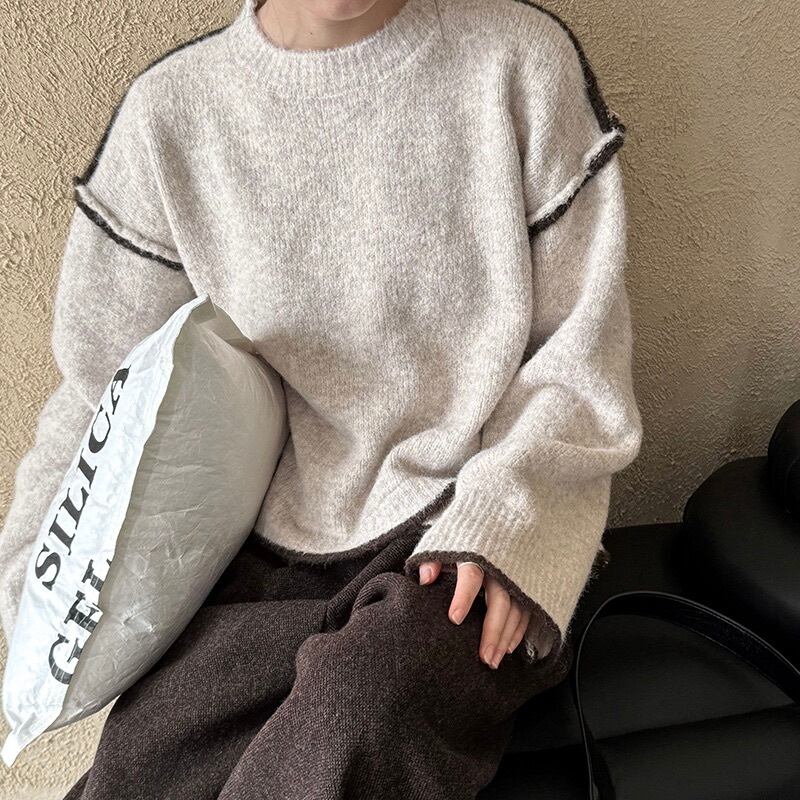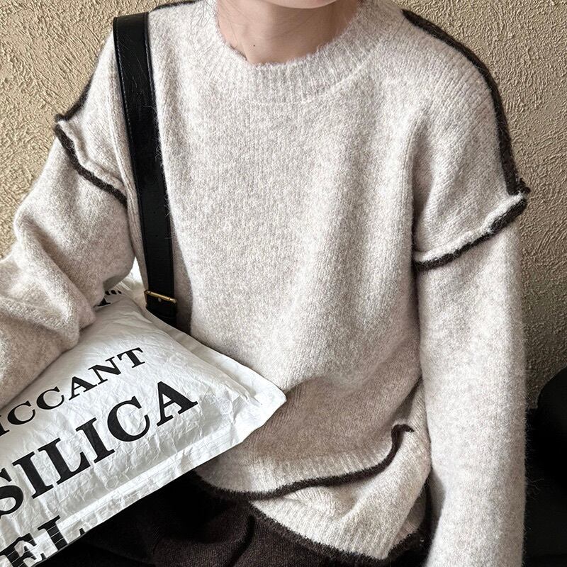 トップス ニット セーター レディース 長袖 ラウンドネック オーバーサイズ コンサバ かわいい 大人可愛い きれいめ シンプル 上品 おしゃれ かっこいい クール エレガント モダン 抜け感 キュート 都会的 クラシカル ベーシック アクティブ ナチュラル 無地 秋 冬 お出かけ 休日 重ね着 韓国 オルチャン 楽ちん 体型カバー 普段使い 着回し レイヤード トレンド 流行 定番 ゆったり ゆる フリーサイズ 茶色 ブラウン グレー ライトグレー ダークグレー ベージュ ベーシックカラー 大人カラー