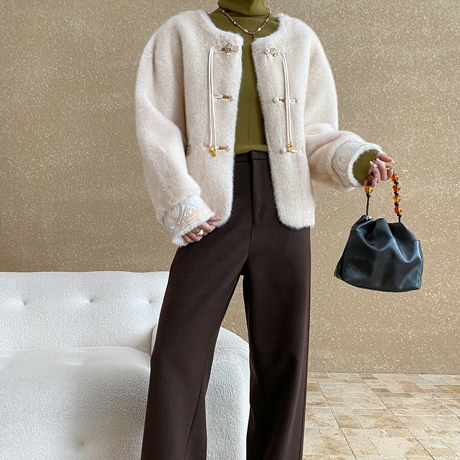 アウター ジャケット コート 上着 レディース レトロコート ノーカラージャケット ショート 長袖 ラウンドネック 切り替え ドッキング 前開き ボタン ヴィンテージ ファー フェイクファー かわいい 大人可愛い 上品 おしゃれ かっこいい レトロ アジアン エスニック エキゾチック こなれ感 ガーリー クール エレガント モダン 主役級 存在感 抜け感 ヴィンテージ キュート 都会的 ラグジュアリー クラシカル ロマンティック お出かけ イベント レイヤード 流行 インスタ映え S M L オフホワイト