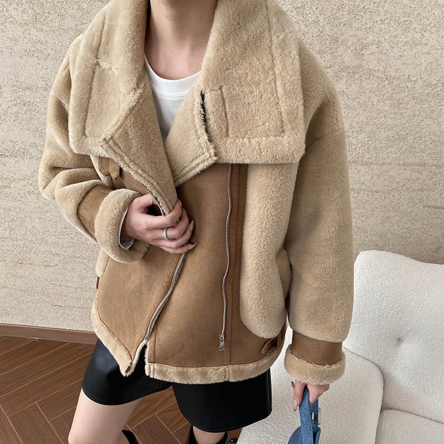 アウター ジャケット 上着 レディース 前開き ボアジャケット 長袖 スタンドカラー ストリート ハイウエスト ボーイフレンド 異素材ミックス かわいい 大人可愛い きれいめ シンプル カジュアル 上品 おしゃれ かっこいい レトロ こなれ感 メンズライク マニッシュ ボーイッシュ クール エレガント 存在感 アメリカン アクティブ ナチュラル ワイルド お出かけ 休日 ショッピング コンサート ライブ フェス ツーリング 重ね着 暖かい 防寒 レイヤード インスタ映え 定番 S M L 茶色 ブラウン