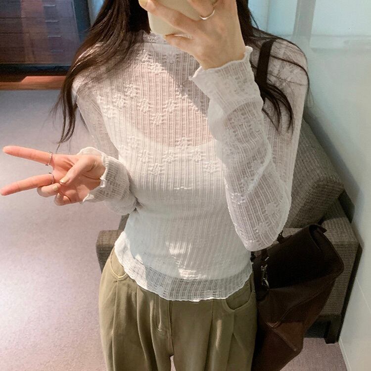 トップス ロンT カットソー レディース 長袖 ボトルネック タイト スリム 細身 フェミニン レース 刺繍 透け感 シースルー かわいい 大人可愛い シンプル おしゃれ こなれ感 ガーリー クール エレガント モダン 抜け感 キュート ロリータ プリンセス ベーシック ロマンティック ナチュラル 花柄 フラワー デート お出かけ イベント 休日 コンサート ライブ 重ね着 韓国 オルチャン 楽ちん 普段使い 着回し レイヤード トレンド 流行 定番 フリーサイズ 白 ホワイト 黒 ブラック オフホワイト