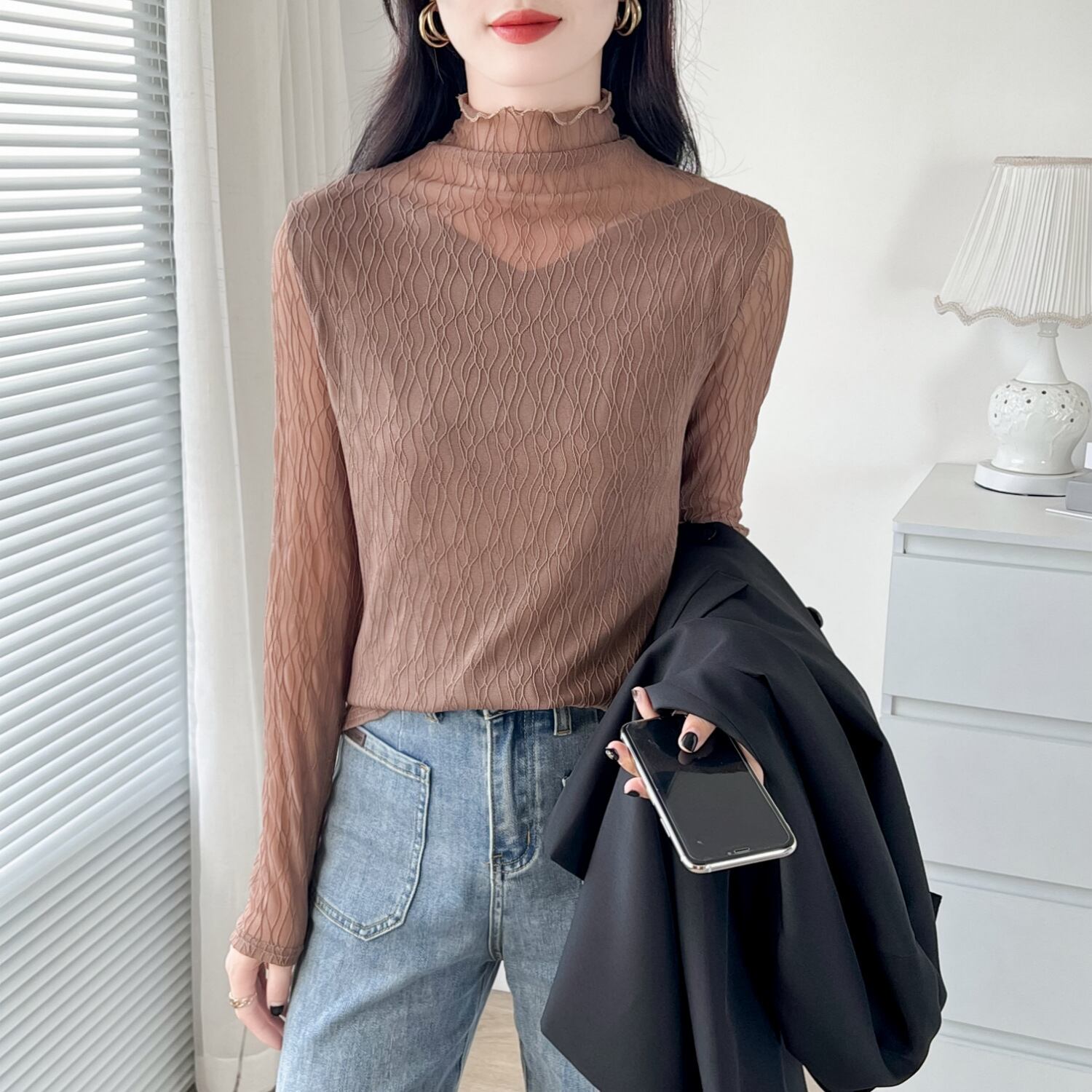 トップス ロンT カットソー レディース 長袖 ハイネック フェミニン レース 刺繍 シースルー 伸縮性 薄手 シアー かわいい 大人可愛い シンプル おしゃれ こなれ感 ガーリー クール エレガント 抜け感 キュート ロリータ プリンセス ベーシック ロマンティック ナチュラル デート お出かけ イベント 旅行 休日 コンサート ライブ カフェ 重ね着 韓国 オルチャン 楽ちん 普段使い 着回し レイヤード トレンド 流行 定番 フリーサイズ 白 ホワイト 黒 ブラック 茶色 ブラウン オフホワイト